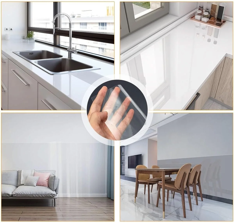 Mobilya,masa yüzeyi koruma folyosu Parlak şeffaf,kendinden yapışkanlı, esneyebilen kaplanacağı eşyanın şeklini alan esnek ve çok kullanışlı bir üründür.